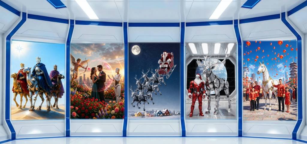 ¡La Colección IA Festiva continúa su viaje por el calendario global! Prepárate para dar un toque biónico a San Valentín (con cápsulas de amor y corazones mecánicos) , celebrar el Año Nuevo Chino 2026 (con majestuosos corceles de cromo y linternas inteligentes) , vibrar en Carnaval (con máscaras inteligentes y desfiles holográficos) , conmemorar San Patricio (con tréboles de energía esmeralda) y descubrir una Pascua futurista (con cápsulas de incubación de datos y conejos mecha)