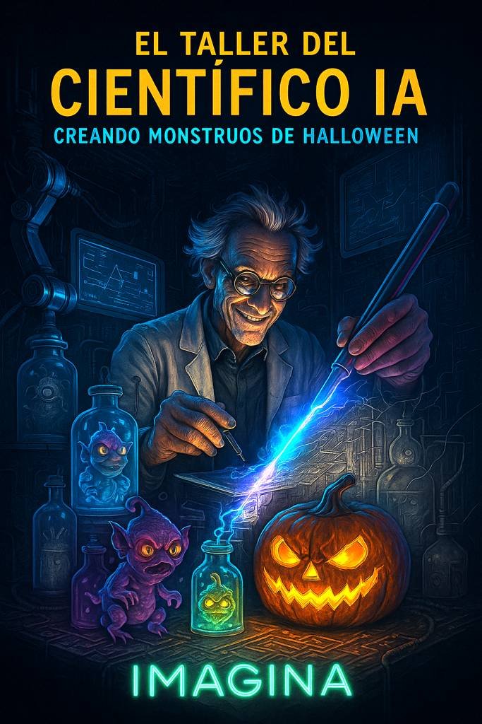 Descripción: Adéntrate en el laboratorio secreto donde la magia de Halloween cobra vida. Este no es solo un libro para colorear, es una historia visual. Acompaña a un brillante científico (¿o es una IA?) mientras diseña, ensambla y activa a las criaturas más icónicas de la noche. Cada ilustración te sumerge en un taller futurista lleno de planos, herramientas biónicas y hologramas, contando la fascinante historia de la creación de monstruos en la era digital.