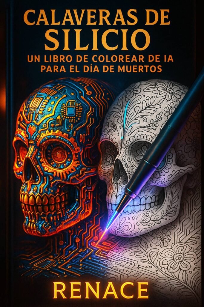 Descripción: Un homenaje respetuoso y una deslumbrante reinterpretación del arte tradicional del Día de Muertos. «Calaveras de Silicio» fusiona la belleza intrincada de las calaveras de azúcar y las Catrinas con la elegancia precisa de la tecnología. Descubre patrones de circuitos impresos que florecen como cempasúchil, cables de fibra óptica que imitan guirnaldas de papel picado y engranajes que se integran en diseños sagrados. Es una celebración de la vida, el recuerdo y la belleza eterna, vista a través de un nuevo lente digital.